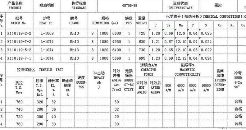 圖(2)Mn13高錳鋼耐磨襯板材質單